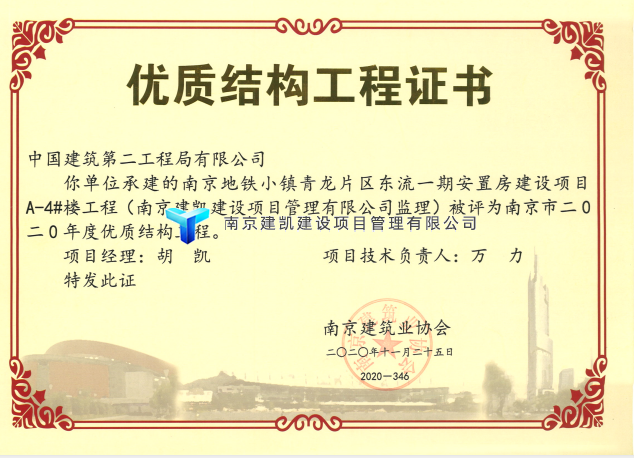 地鐵小鎮(zhèn)項(xiàng)目2號(hào)樓榮獲優(yōu)質(zhì)結(jié)構(gòu)工程證書