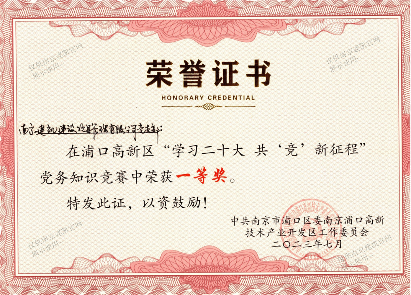 熱烈祝賀我司黨支部榮獲浦口高新區(qū)“學(xué)習(xí)二十大 共競新征程”黨務(wù)知識競賽一等獎