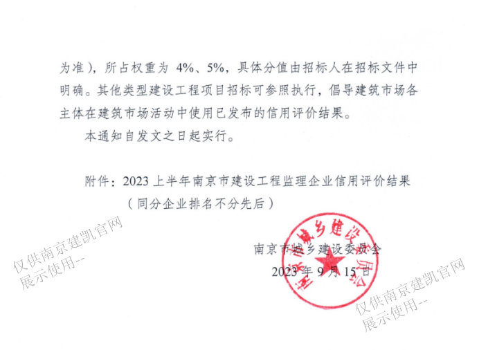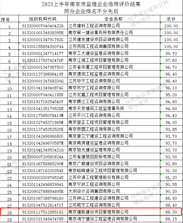我司監(jiān)理企業(yè)在2023年上半年南京市建設(shè)工程監(jiān)理企業(yè)信用評價(jià)綜合得分88.30分