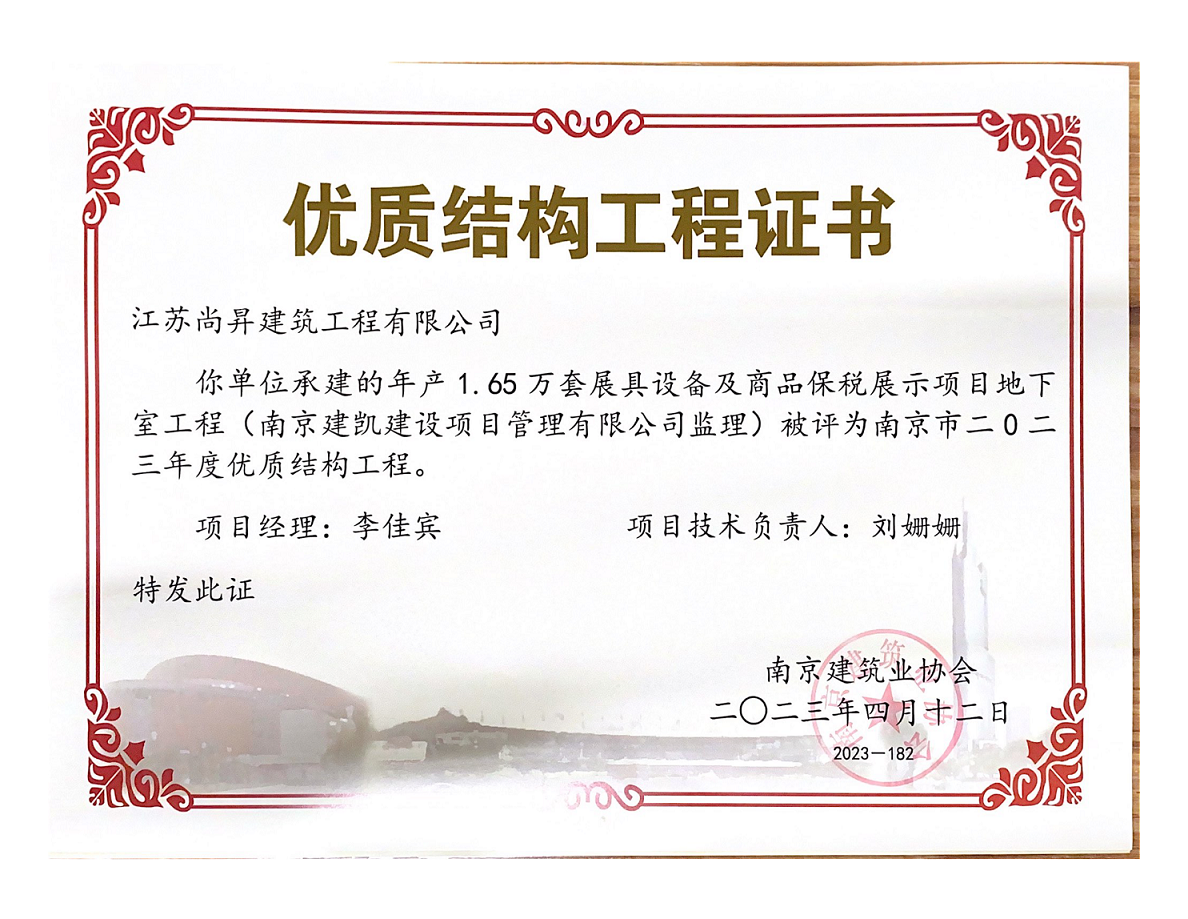 年產(chǎn)1.65萬套展具設備及商品保稅展示項目榮獲“2023年度優(yōu)質(zhì)結構工程”