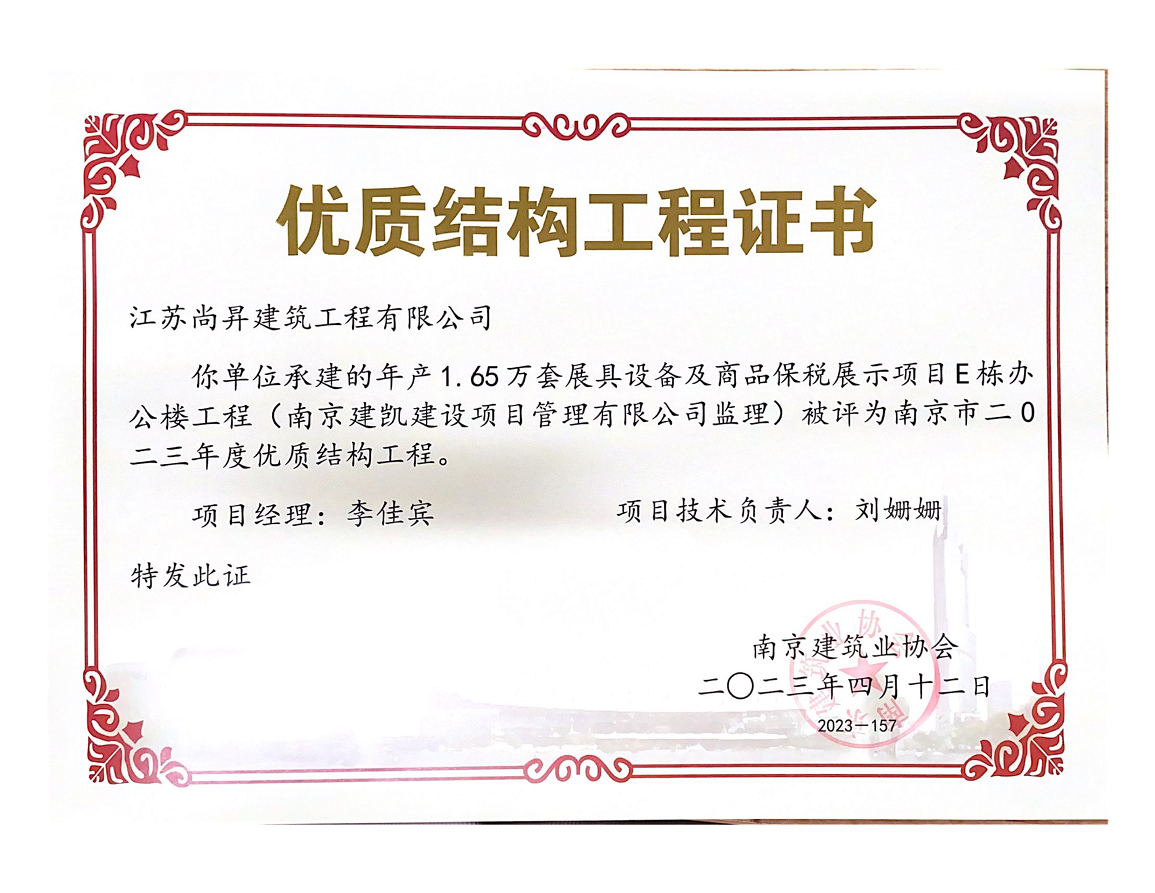 年產(chǎn)1.65萬套展具設備及商品保稅展示項榮獲“2023年度優(yōu)質(zhì)結構工程”