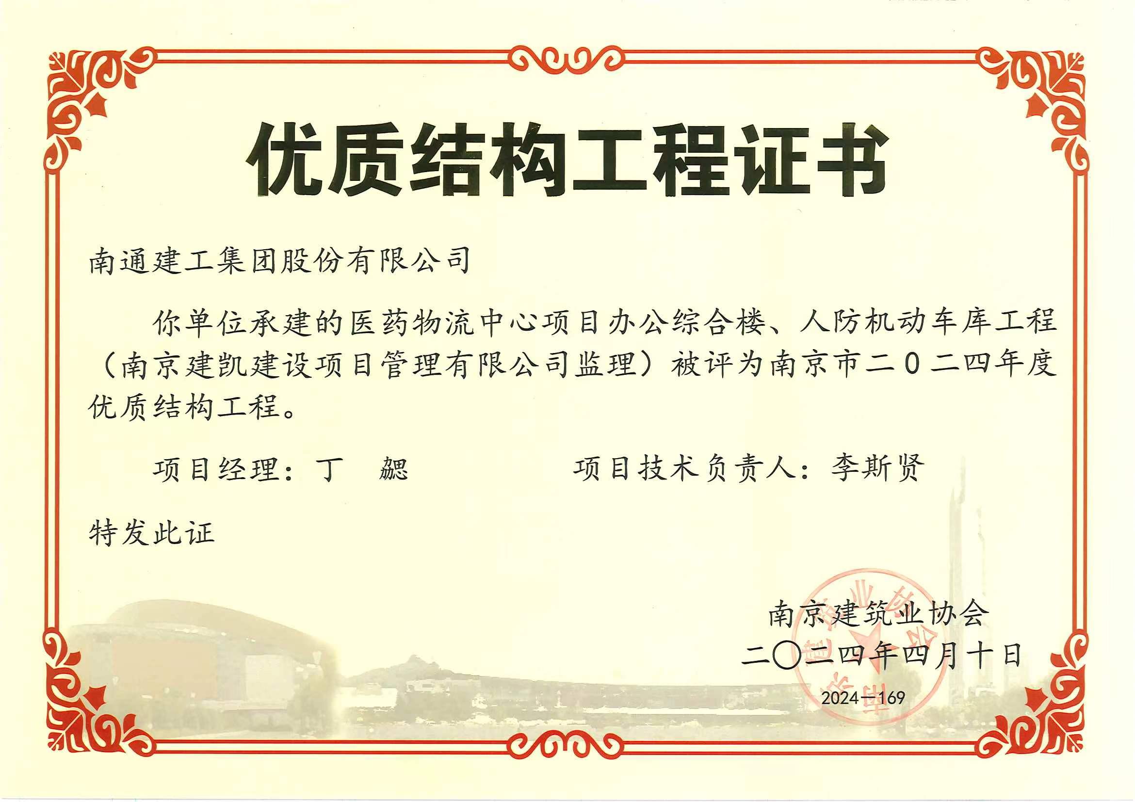 醫(yī)藥物流中心項(xiàng)目辦公綜合樓、人防機(jī)動車庫工程榮獲“南京市優(yōu)質(zhì)工程獎”
