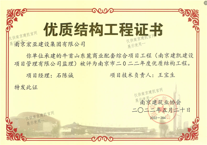 南京市二0二二年度優(yōu)質(zhì)結(jié)構(gòu)工程(牛首山東麓商業(yè)配套綜合項(xiàng)目工程)