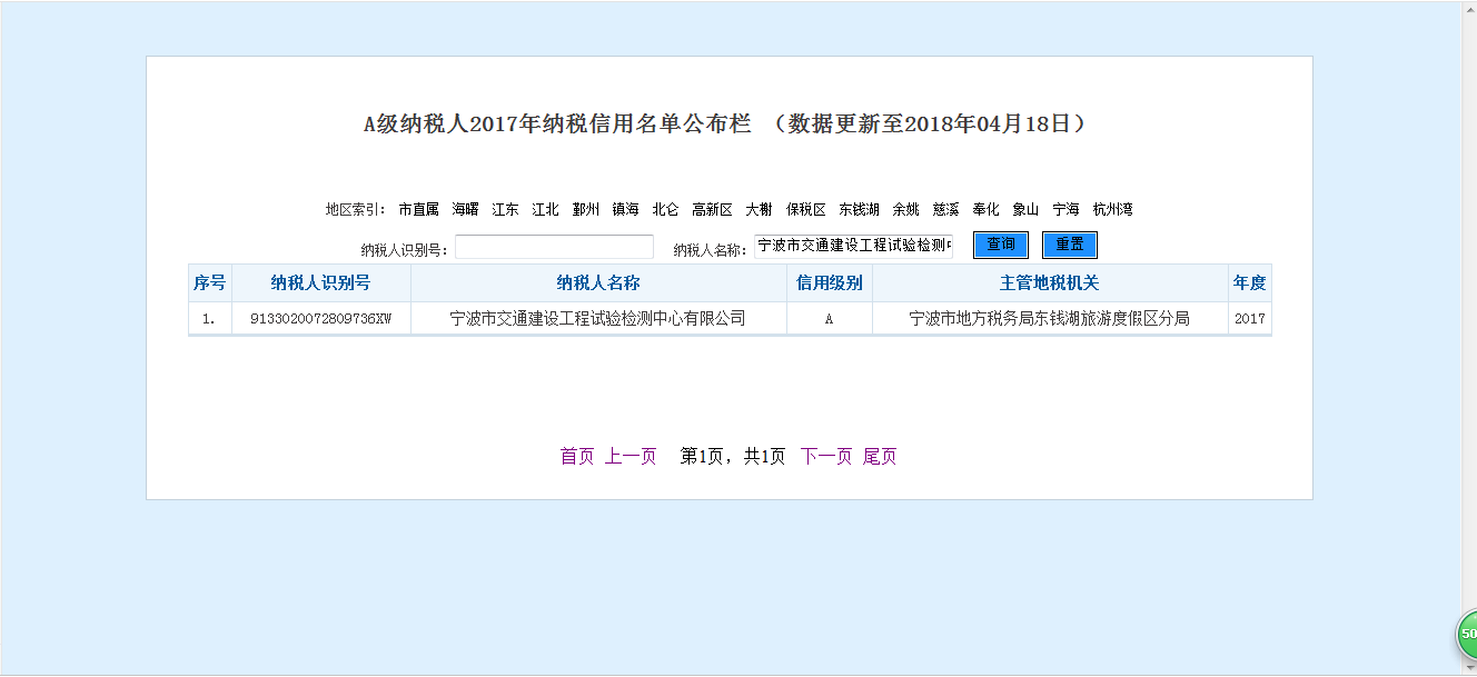 近日,公司在寧波市國家稅務(wù)局、地方稅務(wù)局2017年度納稅人履行納稅義務(wù)情況評定工作中獲得納稅信用等級“A級”評定,該級別系企業(yè)納稅人所能獲得的最高納稅信用等級。納稅信用等級是稅務(wù)主管機關(guān)對納稅企業(yè)上年度稅收工作和納稅信用的綜合評價(jià),“A級”納稅信用等級的取得充分表明了寧波市國、地稅局對公司在合規合法經(jīng)營(yíng)和繳稅方面工作的充分肯定,充分體現了公司依法合規經(jīng)營(yíng)能力和稅收綜合管理水平,也使公司可繼續享受稅務(wù)機關(guān)的多項稅收激勵措施。