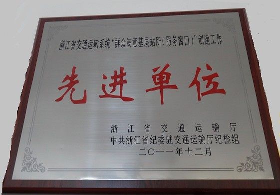 浙江省交通運輸系統“群眾滿(mǎn)意基層站所(服務(wù)窗口)”創(chuàng )建工作先進(jìn)單位