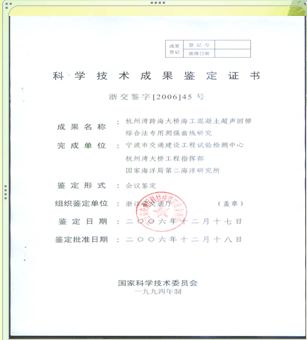 課題:杭州灣跨海大橋海工混凝土超聲回彈綜合法專(zhuān)用測強曲線(xiàn)研究鑒定證書(shū)