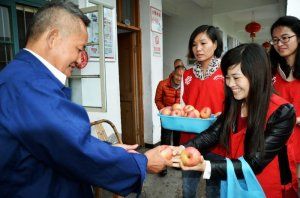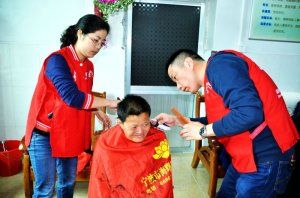 慈城鎮社會(huì )福利中心也是助殘托養中心,位于慈城鎮妙山村,生活在這里大多數是由于各種原因膝下無(wú)兒女且身有殘疾的孤寡老人。上午7時(shí),天空大雨如注,考驗著(zhù)首次做義工的志愿者們,當驅車(chē)到達福利中心后,有幾個(gè)老人已在宿舍門(mén)口等候,像父母等待孩兒回歸,一股熱流涌上志愿者們的心頭。攙扶他們入座,志愿者們就各自進(jìn)入自己擅長(cháng)服務(wù)中,剪頭發(fā)、修指甲、 按摩、打掃院子、擦玻璃窗, 邊忙邊陪老人聊天,看著(zhù)老人們臉上洋溢出來(lái)的笑容,志愿者們也笑開(kāi)了花??斓街形鐣r(shí)分,志愿者們?yōu)樵诮裉焐盏膬晌焕先它c(diǎn)上生日蠟燭,唱起生日歌,祝福他們健康長(cháng)壽,同時(shí)給所有的老人分發(fā)了蛋糕和水果,祝福所有的老人健康長(cháng)壽。整整一個(gè)早上,福利中心充滿(mǎn)了歡聲笑語(yǔ)。
