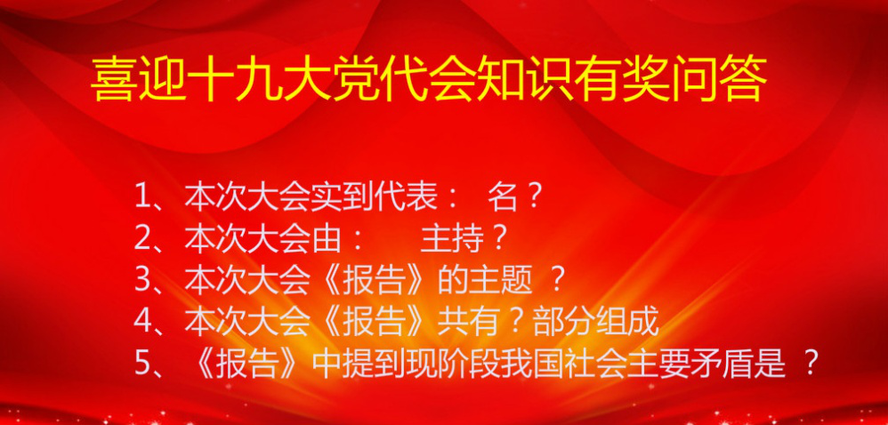 黨的十九大是我國全面建成小康社會(huì )決勝階段、中國特色社會(huì )主義發(fā)展關(guān)鍵時(shí)期召開(kāi)的一次十分重要的大會(huì )。為了提高公司黨員學(xué)習積極性擴大參與度共同學(xué)習領(lǐng)會(huì )十九大會(huì )議精神,公司黨總支積極組織十九大會(huì )議期間每日知識有獎問(wèn)答活動(dòng)。
